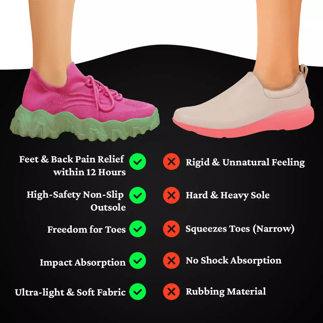 Provides immediate relief from pain and discomfort through cushioning and superior arch support. Improves mobility, reduces fatigue by distributing weight evenly, and prevents future pain by maintaining proper foot alignment.